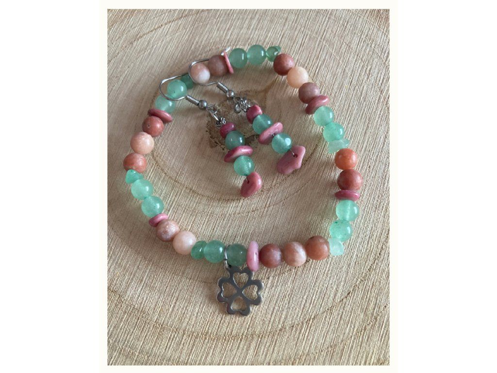 Hravá sada náramku a náušnic s avanturínem a jaspisem