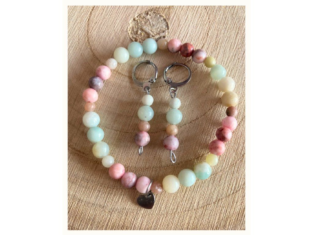 Jemná sada náramku a náušnic s amazonitem a jaspisem