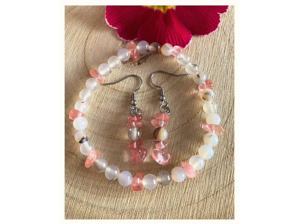 Romantická sada náramku a náušnic s křemenem a achátem