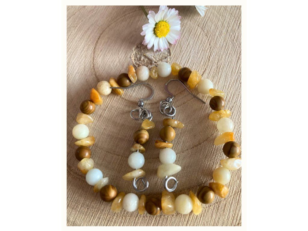 Sluneční sada náramku a náušnic s amazonitem, jaspisem a avanturínem.