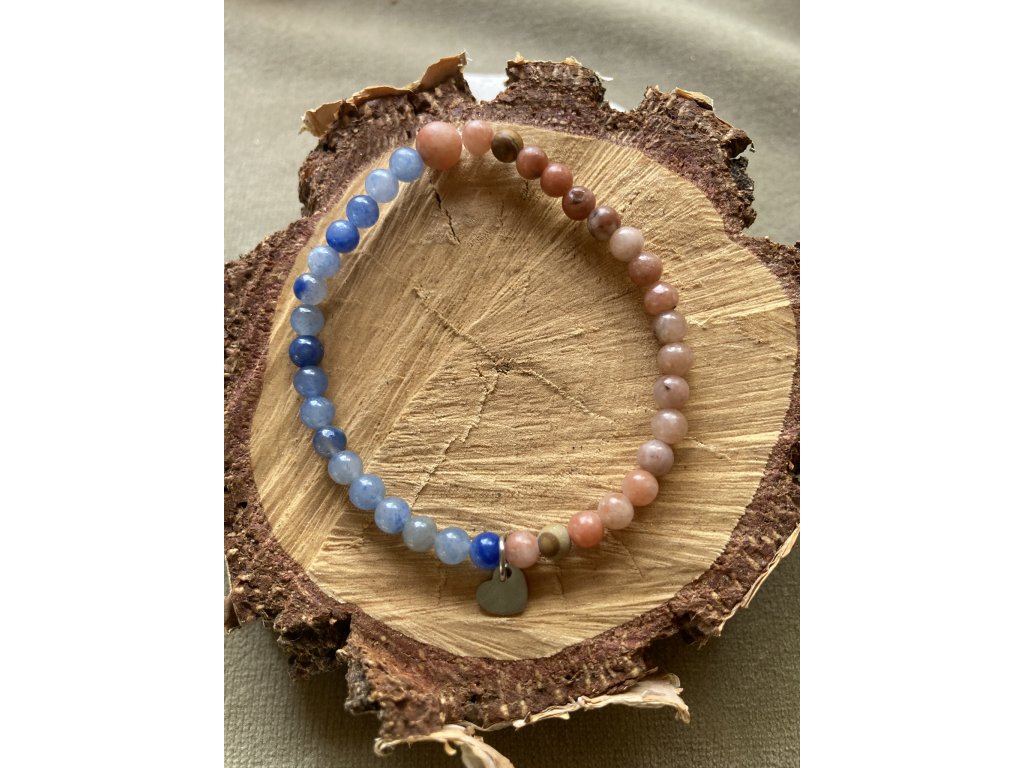 Náramek z minerálních kamenů s přívěskem srdíčko
