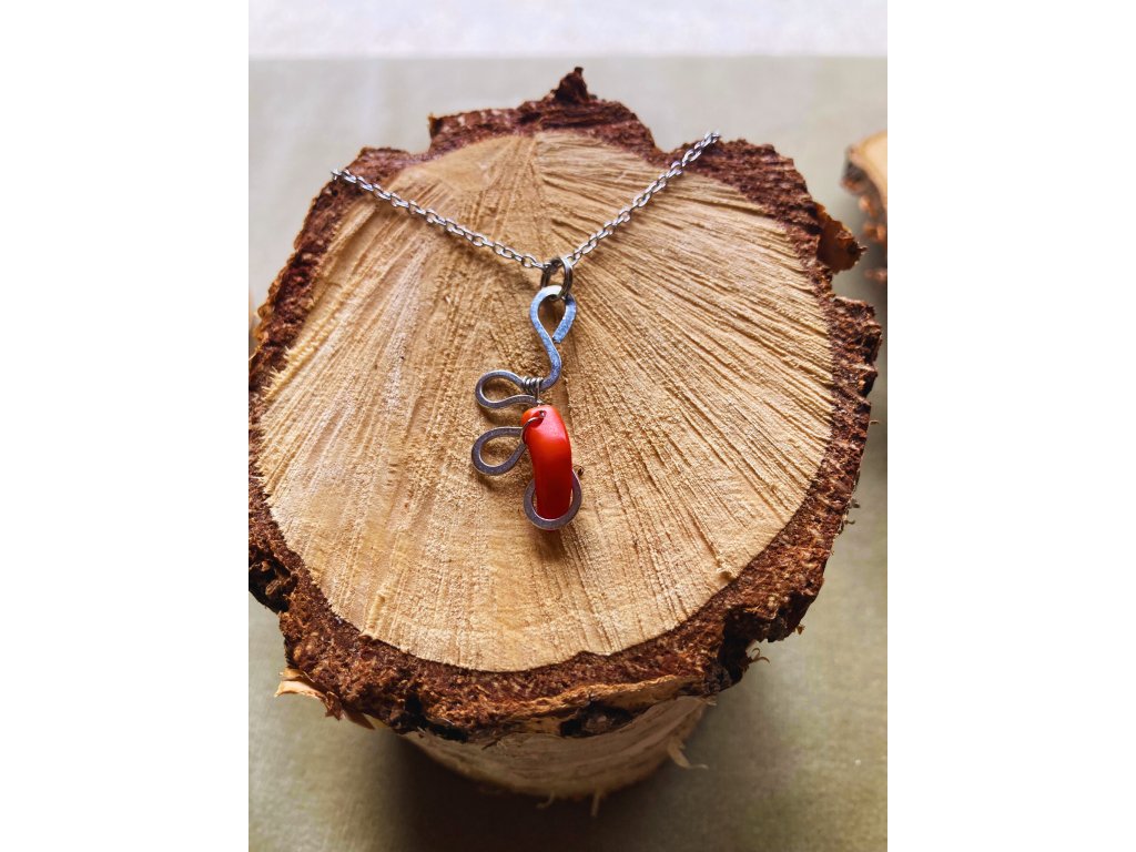 Materiál: červený korál, řetízek z chirurgické oceli
