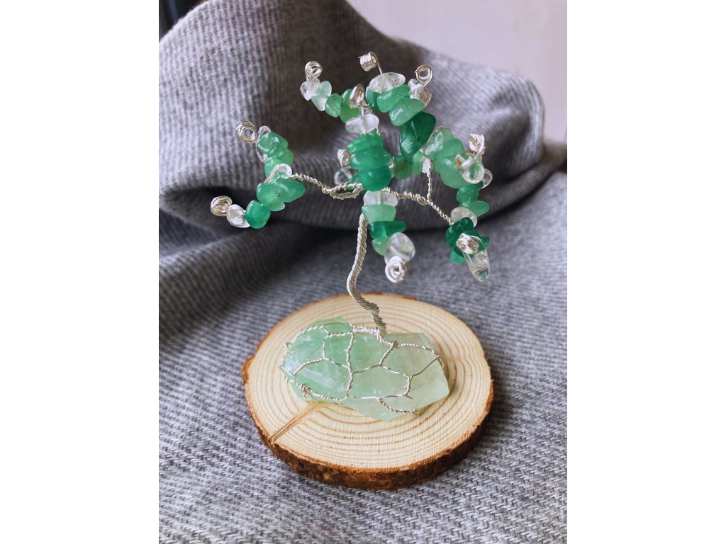 Stromeček se zeleným kalcitem, avanturínem a křišťálem