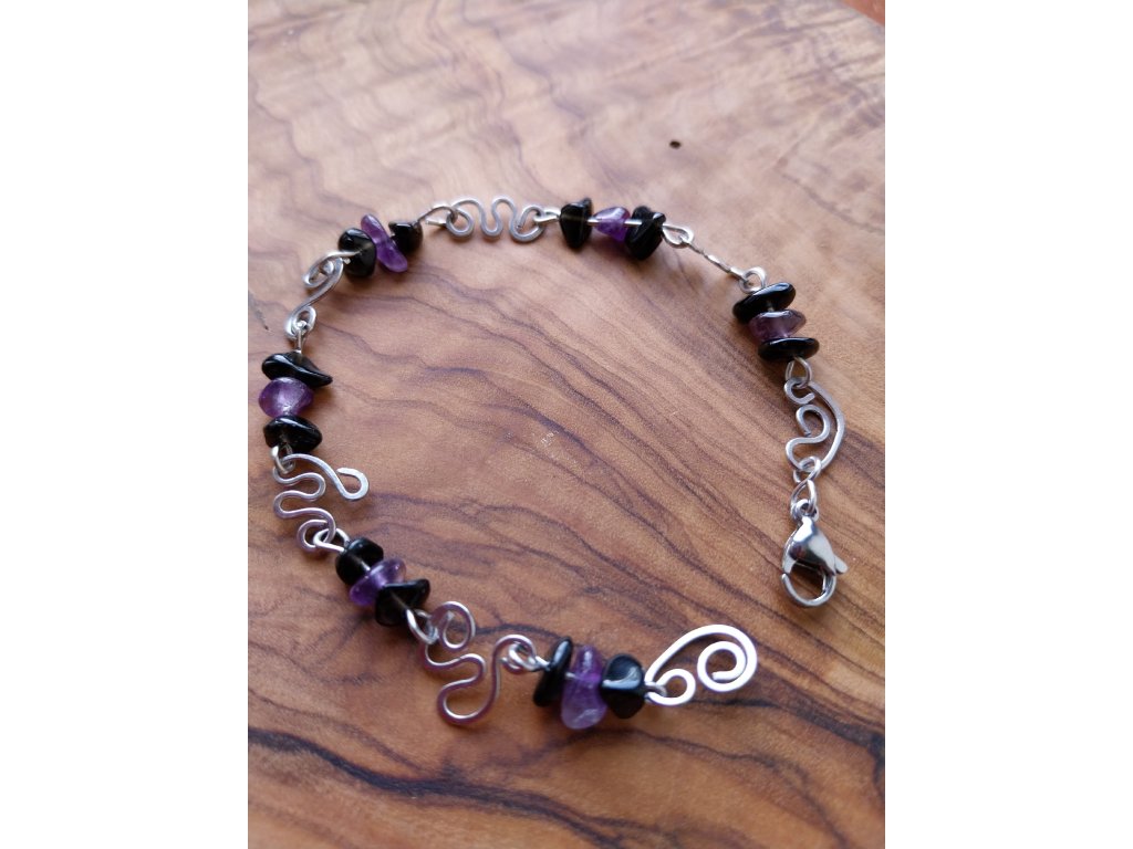 Tepaný náramek s obsidiánem a ametystem